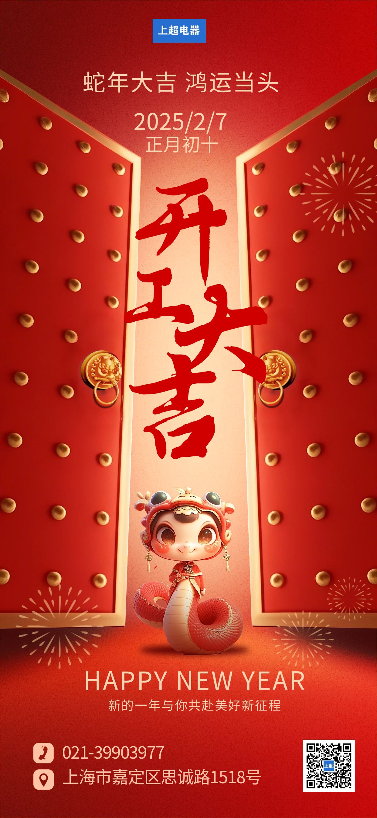 新春伊始,萬象更新!值此乙巳蛇年開工之際,上超電器向全體員工、合作伙伴及廣大客戶致以最誠摯的祝福:開工大吉,財源廣進,萬事順遂!